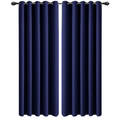 PACKAGE INCLUDES: Each package includes 2 panels with matching Tiebacks. Each curtain panel has eyelet rings on top, which makes blackout curtains easy to install and slide. The inner diameter of each ring measures 4 cm. BLACKOUT EFFECT: Made of high-quality yarn, these curtains block 80-90 % of light. Block light and heat radiation to enter your room and provide complete blackout effect. The thermal door curtains help to maintain calm and relaxing environment for your Living room or bedroom. PREMIUM TEXTURE: Features a luxury solid design, these eyelet curtains are sold ready to hang in any bedroom, living room, or any room that needs new window treatments. Provide a sophisticated look, soft feel, and beautiful drapes to your curtains. ENERGY SAVING: These Blackout curtains help to save energy by lowering temperature and make your environment cool and breezy. Reduce your electricity bills with our unique fine blackout curtains. EASY CARE: Machine washable for easy care and maintenance, do not bleach and tumble dry. Iron them as needed to enhance modern design. Feel free to contact us, if you need any assistance.