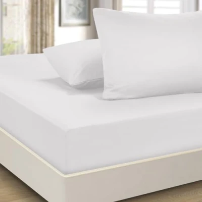 Imperial Rooms Double Fitted Sheet Brushed Microfiber White Bed Sheets 40cm/16" Extra Deep Easy Care Soft Shrinkage and Fade Resistant
