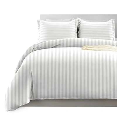 Imperial Rooms Duvet Cover Sets Stripes Satin Quilt Bedding with Pillowcase, Reversible Ultra Soft Hypoallergenic Microfiber Bed Covers (White, Double)
