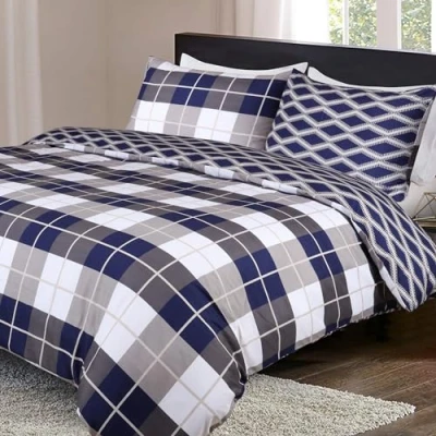 Imperial Rooms Duvet Cover Super King Bed Set Brushed Microfiber Quilt Duvets Sets (260 x 220 Cm) Soft Printed Reversible Bedding Covers + Matching Pillow Cases, Navy Check