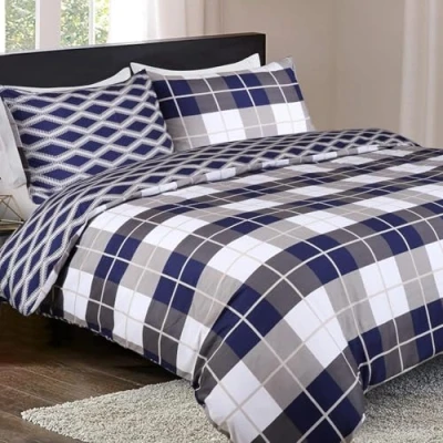 Imperial Rooms Duvet Set Brushed Microfiber Cover King Size Bedding Sets with Pillowcases Printed Reversible Quilt Bed Covers (Navy Check, (230 x 220 Cm))