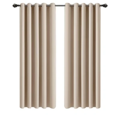 PACKAGE INCLUDES: Each package includes 2 panels with matching Tiebacks. Each curtain panel has eyelet rings on top, which makes blackout curtains easy to install and slide. The inner diameter of each ring measures 4 cm. BLACKOUT EFFECT: Made of high-quality yarn, these curtains block 80-90 % of light. Block light and heat radiation to enter your room and provide complete blackout effect. The thermal door curtains help to maintain calm and relaxing environment for your Living room or bedroom. PREMIUM TEXTURE: Features a luxury solid design, these eyelet curtains are sold ready to hang in any bedroom, living room, or any room that needs new window treatments. Provide a sophisticated look, soft feel, and beautiful drapes to your curtains. ENERGY SAVING: These Blackout curtains help to save energy by lowering temperature and make your environment cool and breezy. Reduce your electricity bills with our unique fine blackout curtains. EASY CARE: Machine washable for easy care and maintenance, do not bleach and tumble dry. Iron them as needed to enhance modern design. Feel free to contact us, if you need any assistance.