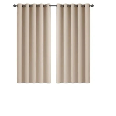 PACKAGE INCLUDES: Each package includes 2 panels with matching Tiebacks. Each curtain panel has eyelet rings on top, which makes blackout curtains easy to install and slide. The inner diameter of each ring measures 4 cm. BLACKOUT EFFECT: Made of high-quality yarn, these curtains block 80-90 % of light. Block light and heat radiation to enter your room and provide complete blackout effect. The thermal door curtains help to maintain calm and relaxing environment for your Living room or bedroom. PREMIUM TEXTURE: Features a luxury solid design, these eyelet curtains are sold ready to hang in any bedroom, living room, or any room that needs new window treatments. Provide a sophisticated look, soft feel, and beautiful drapes to your curtains. ENERGY SAVING: These Blackout curtains help to save energy by lowering temperature and make your environment cool and breezy. Reduce your electricity bills with our unique fine blackout curtains. EASY CARE: Machine washable for easy care and maintenance, do not bleach and tumble dry. Iron them as needed to enhance modern design. Feel free to contact us, if you need any assistance.