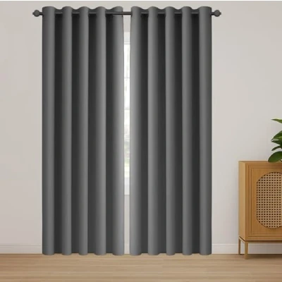 PACKAGE INCLUDES: Each package includes 2 panels with matching Tiebacks. Each curtain panel has eyelet rings on top, which makes blackout curtains easy to install and slide. The inner diameter of each ring measures 4 cm. BLACKOUT EFFECT: Made of high-quality yarn, these curtains block 80-90 % of light. Block light and heat radiation to enter your room and provide complete blackout effect. The thermal door curtains help to maintain calm and relaxing environment for your Living room or bedroom. PREMIUM TEXTURE: Features a luxury solid design, these eyelet curtains are sold ready to hang in any bedroom, living room, or any room that needs new window treatments. Provide a sophisticated look, soft feel, and beautiful drapes to your curtains. ENERGY SAVING: These Blackout curtains help to save energy by lowering temperature and make your environment cool and breezy. Reduce your electricity bills with our unique fine blackout curtains. EASY CARE: Machine washable for easy care and maintenance, do not bleach and tumble dry. Iron them as needed to enhance modern design. Feel free to contact us, if you need any assistance.