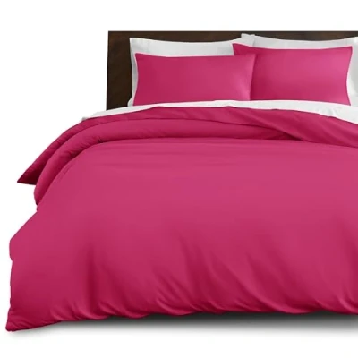 Imperial Rooms King Size Duvet Cover Sets Brushed Microfiber 3 PCs Plain Bedding Set with Pillow Cases Button Closure Ultra Soft Quilt Bed (230 x 220 Cm) Pink