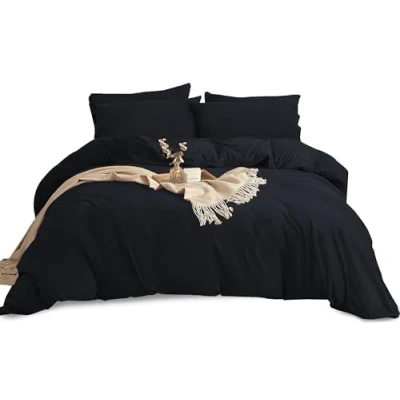 Imperial Rooms King Size Duvet Cover Sets Brushed Microfiber 3 PCs Plain Black Bedding Set with Pillow Cases Button Closure Ultra Soft Quilt Bed (230 x 220 Cm)