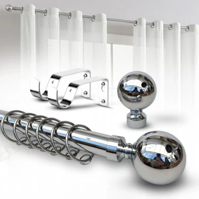 Imperial Rooms Plain Metal Ball Curtain Poles Extendable Includes Chrome 120 210 Cm Rod, Finials, Rings, Brackets & Fittings Set
