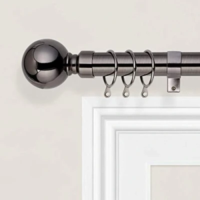 Imperial Rooms Plain Metal Ball Curtain Poles Extendable Includes Rod, 60mm Size Finials, Rings, Brackets & Fittings Set (Black Nickel, 70 120 Cm, 28 Inches to 48 Inches)
