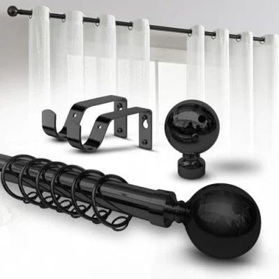 Imperial Rooms Plain Metal Ball Curtain Poles Extendable Includes Rod, 60mm Size Finials, Rings, Brackets & Fittings Set (Matte Black, 70 120 Cm, 28 Inches to 48 Inches)