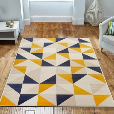 Imperial Rooms Rugs for Bedroom Area Living Room Large 200x290 Cm Modern Floor Carpet yellow Triangle Pattern Super Soft Geometric Extra Rug Easy Care (Brio)