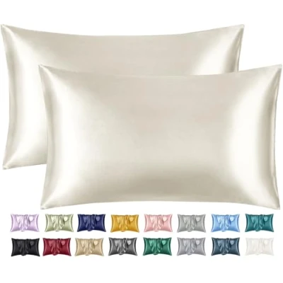 Imperial Rooms Satin Pillow Cases 2 Pack Ivory Pillowcases For Hair and Skin Standard Size Silk with Envelope Closure Hypoallergenic 50 x 75 cm