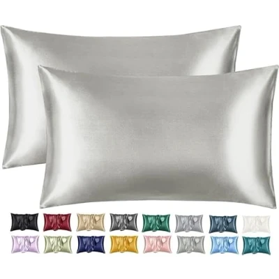 Imperial Rooms Satin Pillow Cases 2 Pack Silver Pillowcases For Hair and Skin Standard Size Silk with Envelope Closure Hypoallergenic 50 x 75 cm