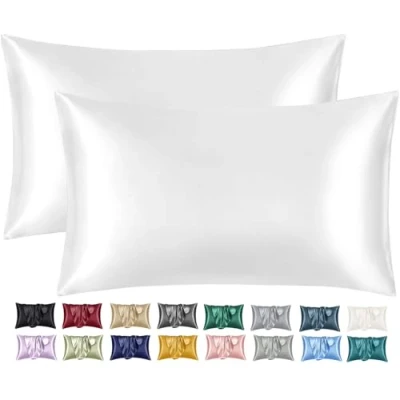Imperial Rooms Satin Pillow Cases 2 Pack White Pillowcases For Hair and Skin Standard Size Silk with Envelope Closure Hypoallergenic 50 x 75 cm