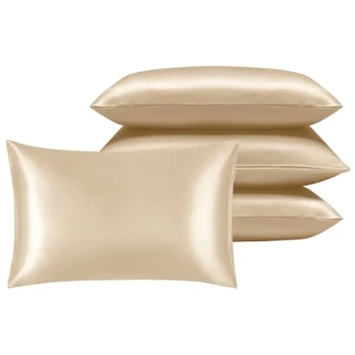 Imperial Rooms Satin Pillow Cases 4 Pack Champagne Pillowcases For Hair and Skin Standard Size Silk with Envelope Closure Hypoallergenic 50 x 75 cm