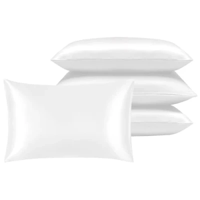 Imperial Rooms Satin Pillow Cases 4 Pack White Pillowcases For Hair and Skin Standard Size Silk with Envelope Closure Hypoallergenic 50 x 75 cm