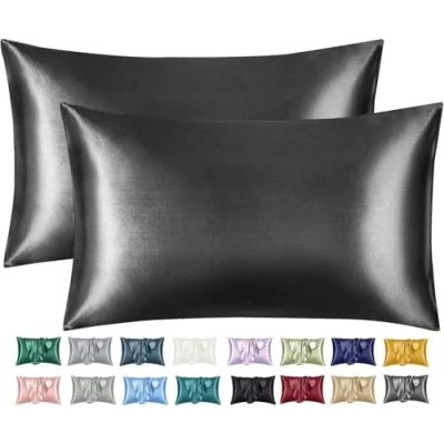 Imperial Rooms Satin Pillowcase 4 Pack Silk Pillowcases for Hair and Skin, Gifts Women Charcoal Pillow cases with Envelope Closure (50x75 cm)