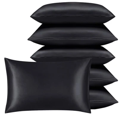 Imperial Rooms Satin Pillowcase 6 Pack Silk Pillowcases for Hair and Skin Gifts Women Black Pillow cases with Envelope Closure (50x75 cm)