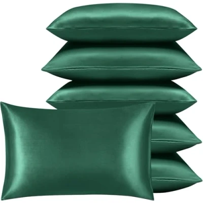 Imperial Rooms Satin Pillowcase 6 Pack Silk Pillowcases for Hair and Skin, Gifts Women Emerald Pillow cases with Envelope Closure (50x75 cm)