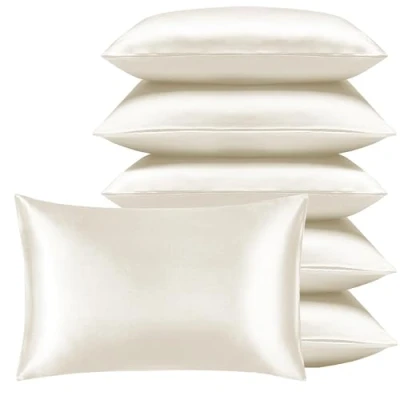 Imperial Rooms Satin Pillowcase 6 Pack Silk Pillowcases for Hair and Skin, Gifts Women Ivory Pillow cases with Envelope Closure (50x75 cm)
