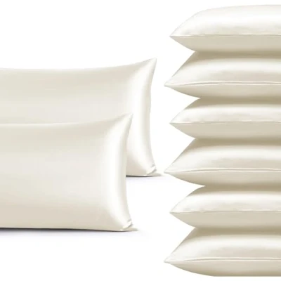 Imperial Rooms Satin Pillowcase 8 Pack Silk Pillowcases for Hair and Skin, Gifts Women Ivory Pillow cases with Envelope Closure (50x75 cm)