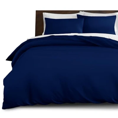 Imperial Rooms Super King Duvet Set Brushed Microfiber 3 Piece Plain Navy Bedding Bed Sets with Pillow Cases Ultra Soft Cover Button Closure (260 x 220 Cm)