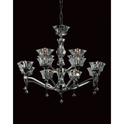 A stunning display of elegant symmetry the Bresica Lead Crystal and Nickel Halogen 12-Arm Chandelier is a wonderful choice to illuminate many areas of the home. Casting brilliant light this fixture has lead crystal shades and modern style to lend interest to any setting. Perfect for a dining room, foyer, or living space for a sophisticated touch.