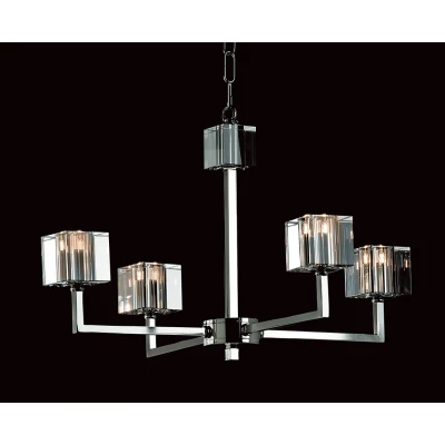 IMPEX Cube Modern Halogen Nickel 4 Arm Chandelier
