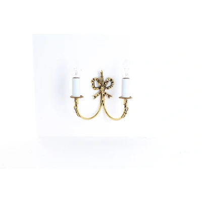 Detailed with a pretty bow-shaped wall plate, the Richmond 2-Light Polished Brass Candle Wall Lamp is a sophisticated choice to illuminate a hallway or entryway. It has a gleaming finish and wonderful candle-like light to dazzle and add a remarkable element to any decorating scheme.
