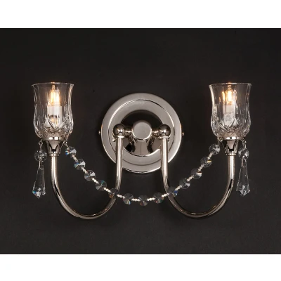 IMPEX Tulip Halogen Strass 2 Light Crystal Nickel Candle Wall Lamp