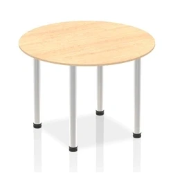 Impulse 1000mm Round Table Maple Top Brushed Aluminium Post Leg
