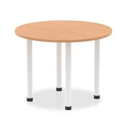Impulse 1000mm Round Table Oak Top White Post Leg