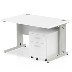 Impulse 1200 x 800mm Straight Office Desk White Top Silver Cable Managed Leg Workstation 2 Drawer Mobile Pedestal