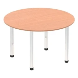 Impulse 1200mm Round Table Beech Top Chrome Post Leg
