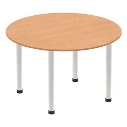 Impulse 1200mm Round Table Oak Top Brushed Aluminium Post Leg