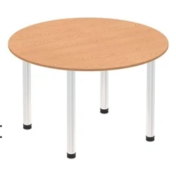 Impulse 1200mm Round Table Oak Top Chrome Post Leg