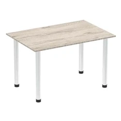 Impulse 1200mm Straight Table Grey Oak Top Chrome Post Leg