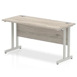 Impulse 1400 x 600mm Straight Desk Grey Oak Top Silver Cantilever Leg