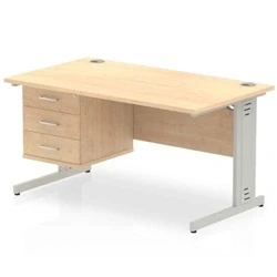 Impulse 1400 x 800mm Straight Office Desk Maple Top Silver Cable Managed Leg Workstation 1 3 Drawer Fixed Pedestal