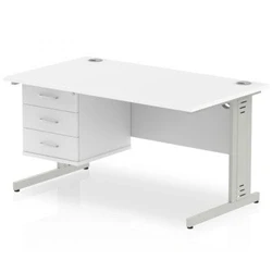 Impulse 1400 x 800mm Straight Office Desk White Top Silver Cable Managed Leg Workstation 1 3 Drawer Fixed Pedestal