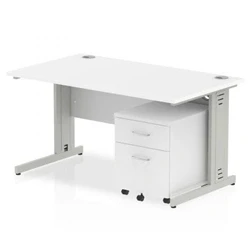 Impulse 1400 x 800mm Straight Office Desk White Top Silver Cable Managed Leg Workstation 2 Drawer Mobile Pedestal