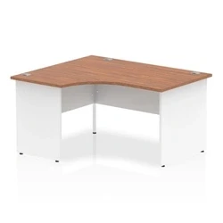 Impulse 1400mm Left Crescent Desk Walnut Top White Panel End Leg