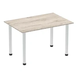 Impulse 1400mm Straight Table Grey Oak Top Brushed Aluminium Post Leg
