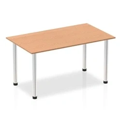 Impulse 1400mm Straight Table Oak Top Chrome Post Leg