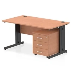 Impulse 1400x800 Desk Beech/Black Cable Managed Leg 3 Dr Mobile Ped