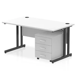 Impulse 1400x800 Desk Cantilever Leg White/Black 3 Drawer Mobile Ped