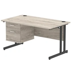 Impulse 1400x800 Desk Grey Oak/Black Cantilever Leg 2 Drawer Fixed Ped