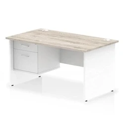 Impulse 1400x800 Desk Grey Oak/White Panel End 1x2 Drawer Fixed Ped