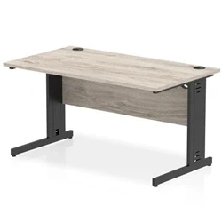 Impulse 1400x800mm Straight Desk Grey Oak Top Black Cable Managed Leg