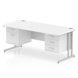 Impulse 1600 Rectangle Silver Cant Leg Desk White 1 x 2 MI002239