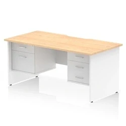 Impulse 1600 x 800mm Edge Office Desk Maple Top White Panel End Leg Workstation 1 2 Drawer 3 Fixed Pedestal